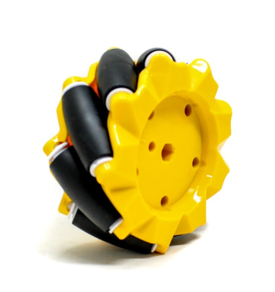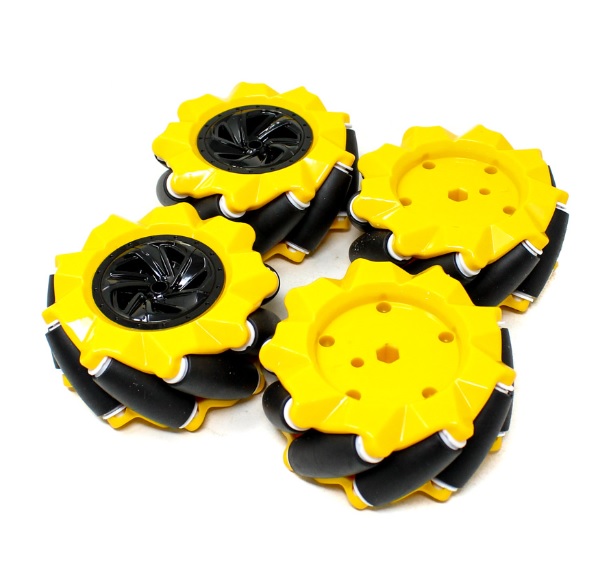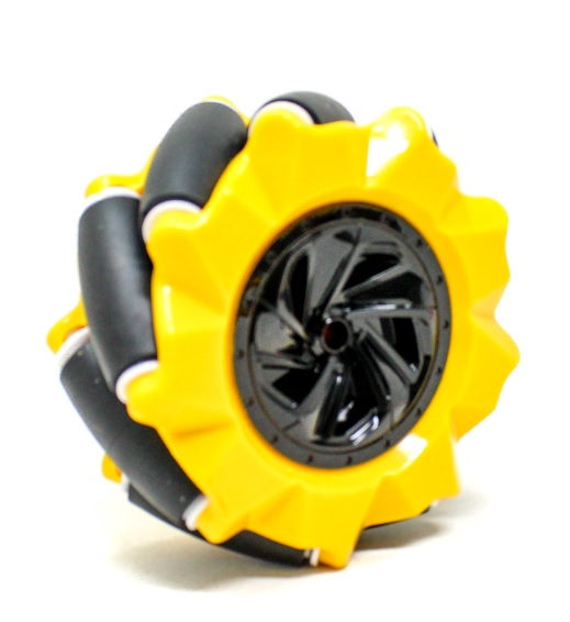 This is an 80mm-A Mecanum Wheel Compatible with 6.7mm Coupling (Pack of 4)-Yellow.