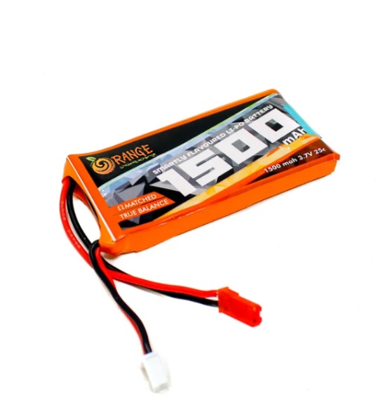 Orange 1500 mAh 1S 25C Lithium polymer battery Pack (LiPo) batteries are equipped with heavy-duty discharge leads to minimize resistance and sustain high current loads. Orange batteries stand up to the punishing extremes of aerobatic flight and RC vehicles. Each pack is equipped with gold plated connectors. All Orange Lithium Polymer batteries packs are assembled using IR matched cells.