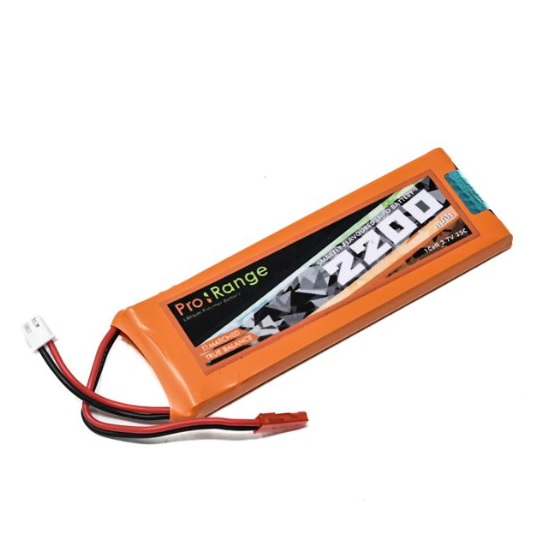 Pro-Range 2200 mAh 1S 25C/50C Lithium polymer battery Pack (LiPo) batteries are equipped with heavy duty discharge leads to minimize resistance and sustain high current loads. Pro-Range batteries stand up to the punishing extremes of aerobatic flight and RC vehicles. Each pack is equipped with gold plated connectors. All Pro-Range Lithium Polymer batteries packs are assembled using IR matched cells.
