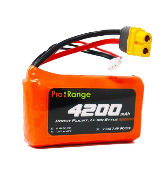 This is a Pro-Range INR 21700 P42A 7.4V 4200mAh 2S1P 40A/50A Discharge Li-ion Drone Battery Pack