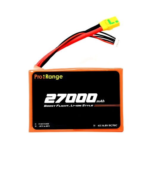 This is a Pro-Range INR 21700 P45B 14.8V 27000mAh 4S6P 215A/270A Discharge Li-ion Drone Battery Pack with Amass XT90S Anti-Spark