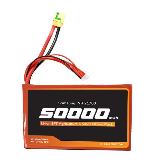 This is Samsung INR 21700 50S 22.2 V 50000 mAh 6s10p 350A/450A Discharge Li-ion EFT Agriculture Drone Battery Pack