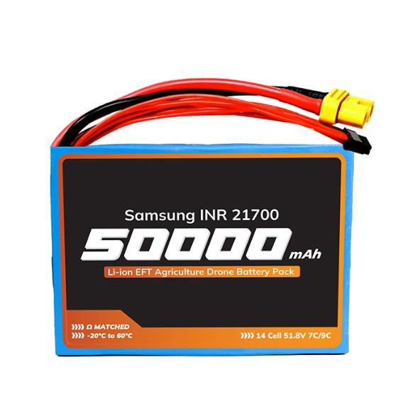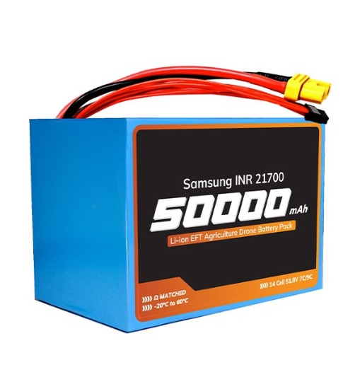 This is Samsung INR 21700 50S 51.8 V 50000 mAh 14s10p 350A/450A Discharge Li-ion EFT Agriculture Drone Battery Pack