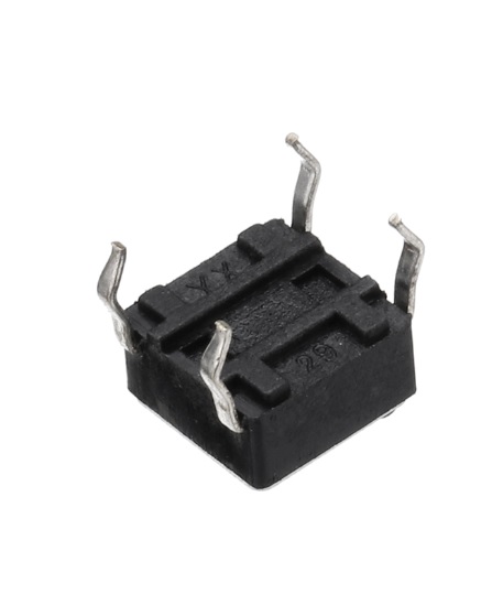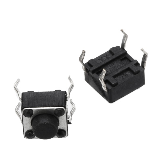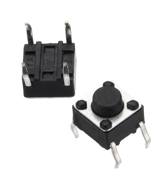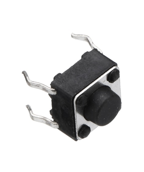 6x6x5mm Tactile Push Button Switch is widely used as a standard input “buttons” on electronic projects. These work best when you mount it on PCB but can also be used on a solderless breadboard for temporary connections in prototypes. The pins are normally open (disconnected) and when the button is pressed they are momentarily closed and complete the circuit.