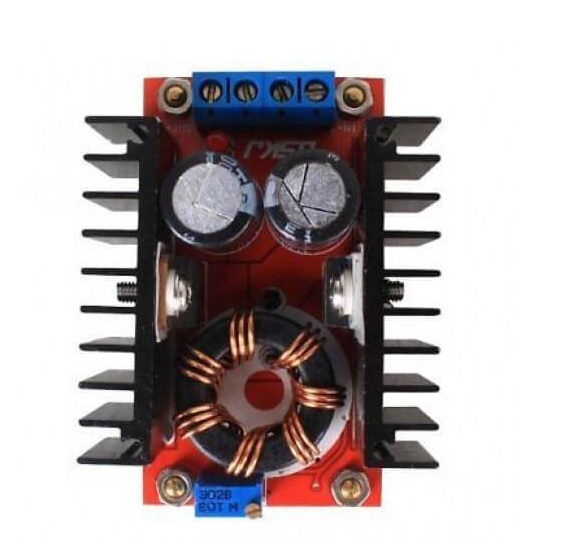 This 150W DC-DC Boost Converter 10-32V to 12-35V 6A Step-Up Adjustable Power Supply is well into the heavy-duty end of the spectrum @ 150W; as you can tell by the huge toroidal inductor and dual heatsinks.